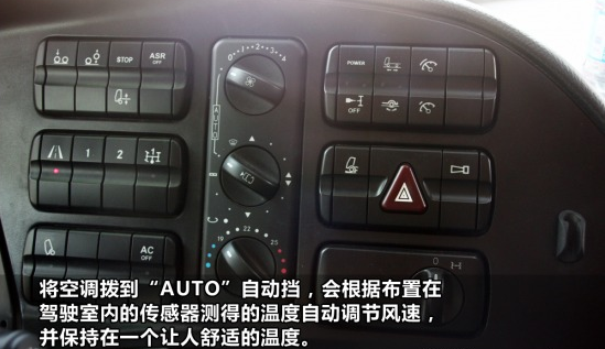 奔馳的自動(dòng)空調(diào)在駕駛室內(nèi)設(shè)有傳感器,根據(jù)駕駛室不同部位的溫度判斷不同的出風(fēng)速度和風(fēng)量,人在里面不會(huì)感覺到空調(diào)出風(fēng)口對(duì)著人吹,但很快就能降到一個(gè)讓人感到舒適的溫度。