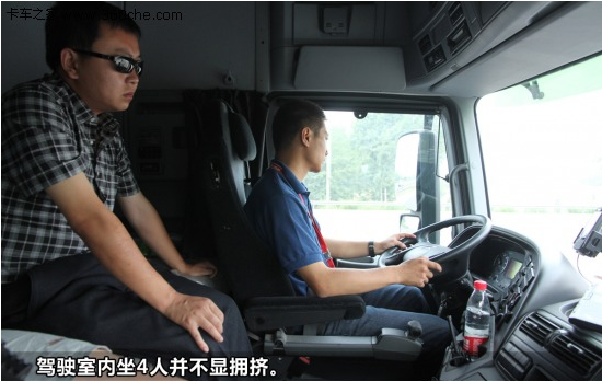 這Megaspace系列款駕駛室是奔馳Actros批量車型中最大的一款,內(nèi)部空間沒的說,在之前的文章中我們也介紹過了,平地板駕駛室能夠在里面直立行走。此次試駕過程中,為了更好的展示奔馳的各項(xiàng)功能,駕駛室內(nèi)需要坐上包括駕駛員、奔馳培訓(xùn)師、攝像和攝影四個(gè)人,沒有一點(diǎn)擁擠,而且相互之間的工作也不會(huì)干涉,保證了試駕過程的順利進(jìn)行。