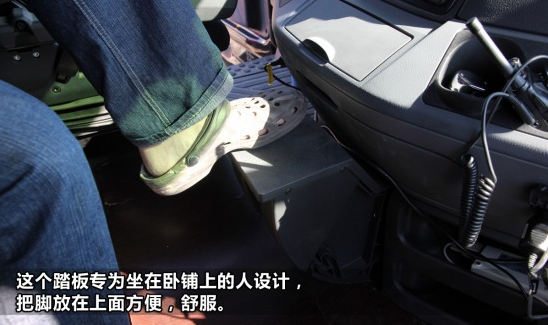 除了駕駛員和副駕駛,另外兩個(gè)人就需要坐在臥鋪上了。試駕過程中還要測(cè)試各種減速制動(dòng)的項(xiàng)目,中控臺(tái)前一篇空曠還是有點(diǎn)危險(xiǎn)的。不過奔馳的設(shè)計(jì)師似乎很早就幫我們想到了這點(diǎn),在中控臺(tái)下面可以彈出一個(gè)腳踏板,坐在臥鋪上可以將腳放在那上面有個(gè)支撐,不用的時(shí)候可以收起來。