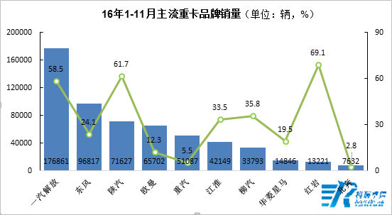 2016年1-11月主流重卡品牌銷量監(jiān)測